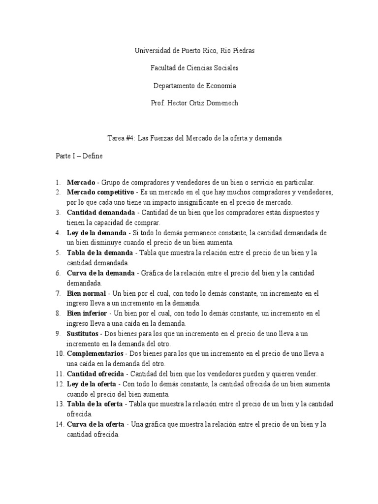 Tarea #4: Las Fuerzas del Mercado de la oferta y demanda