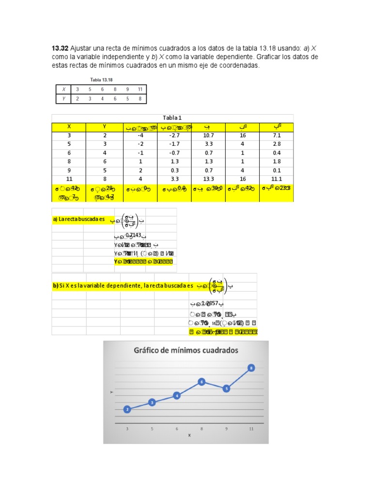 13.34 a) Empleando el método a mano, obtener una ecuación de la recta que se ajuste a