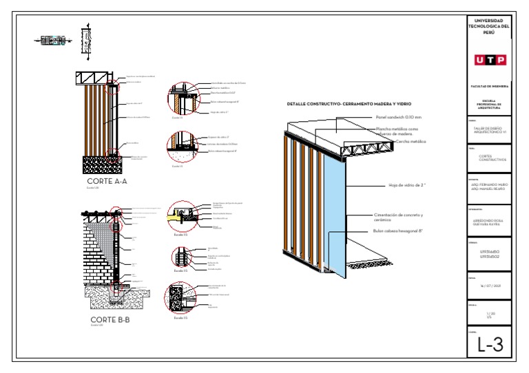 Hoja de vidrio de 2" DETALLE CONSTRUCTIVO- CERRAMIENTO MADERA Y VIDRIO PROFESIONAL DE