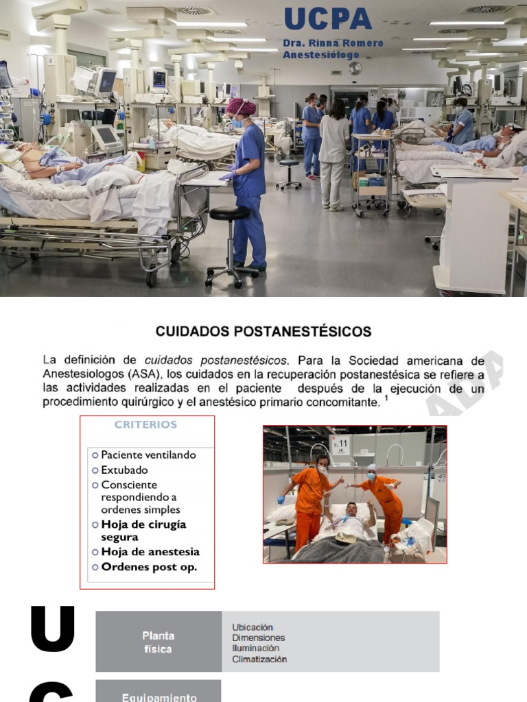 la PACU; si así es solicitado por el staff de enfermería, lo cual esta muy relacionado con la condición de paciente.