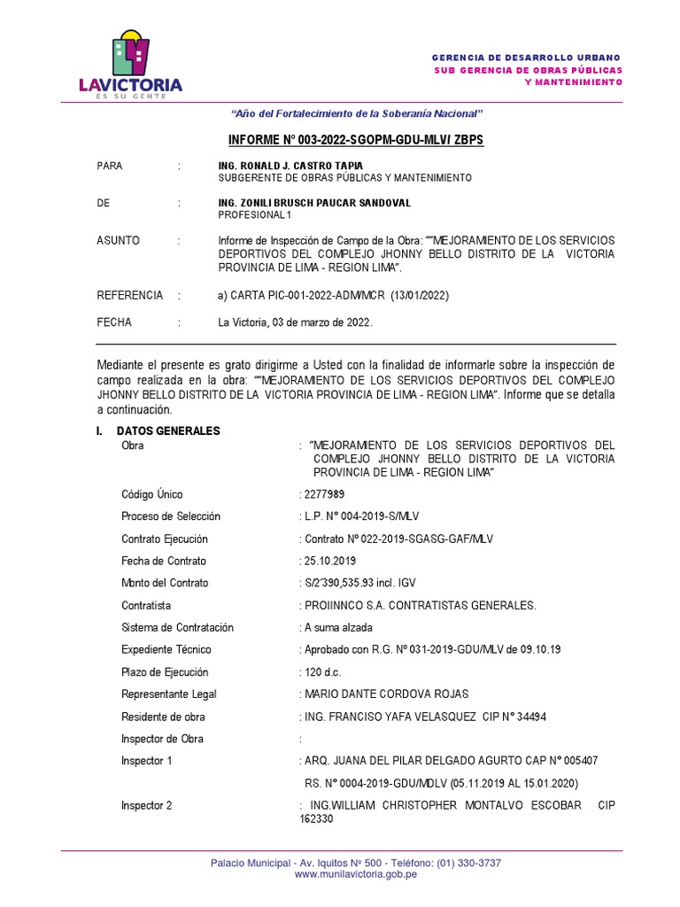 INFORME Nº 003-2022-SGOPM-GDU-MLV/ ZBPS