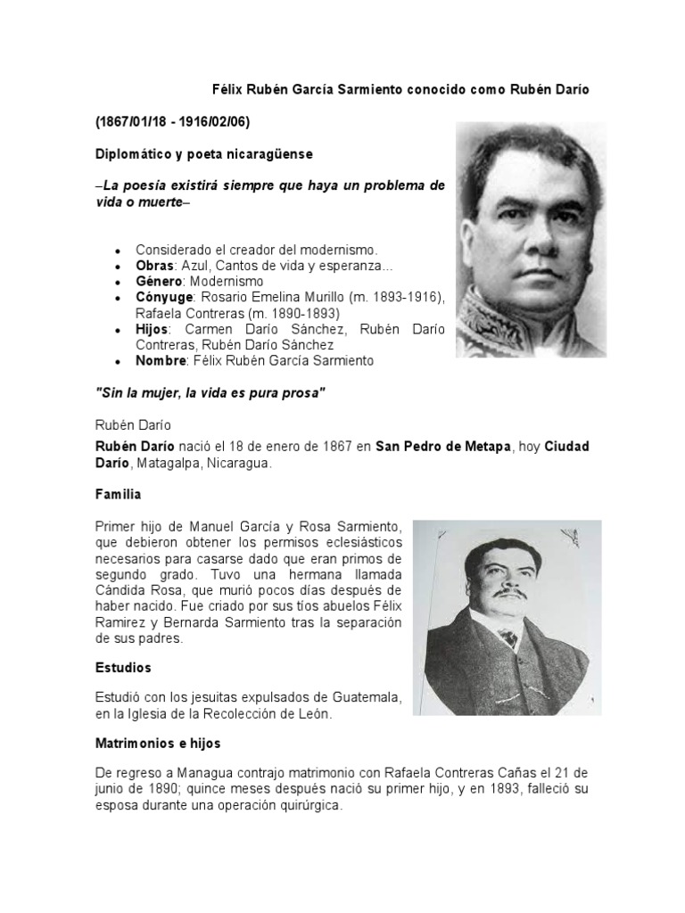 Hijos: Carmen Darío Sánchez, Rubén Darío