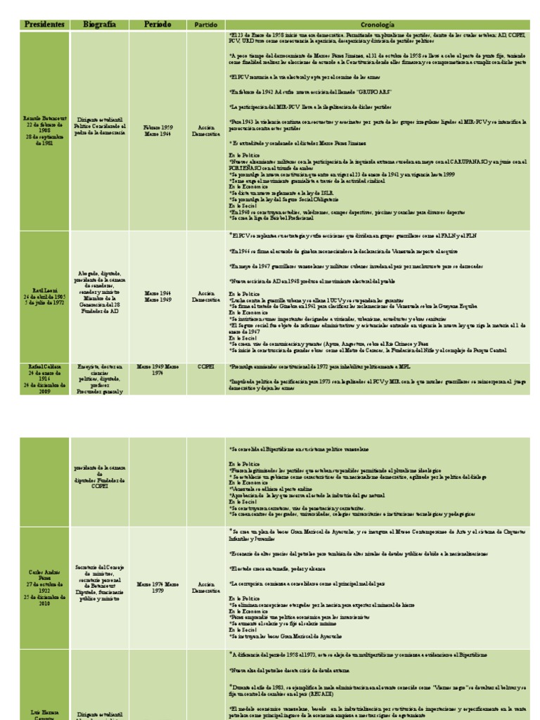 Presidentes Biografía Período Partido Cronología