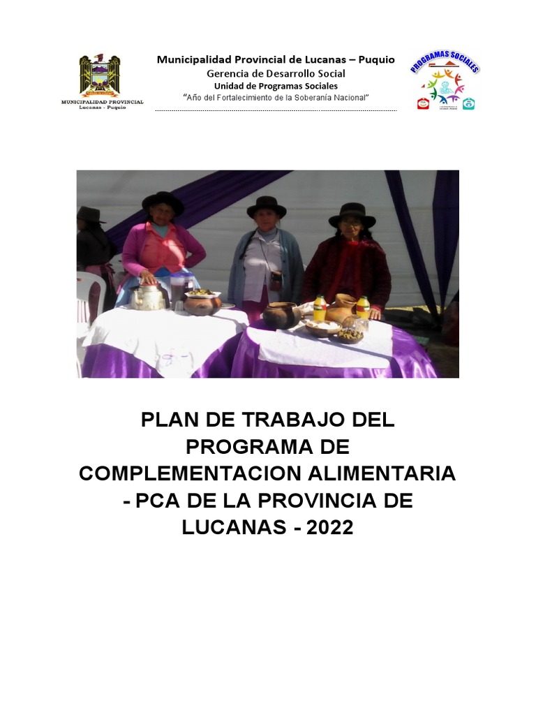 PLAN DE TRABAJO DEL PROGRAMA DE COMPLEMENTACION ALIMENTARIA - PCA DE