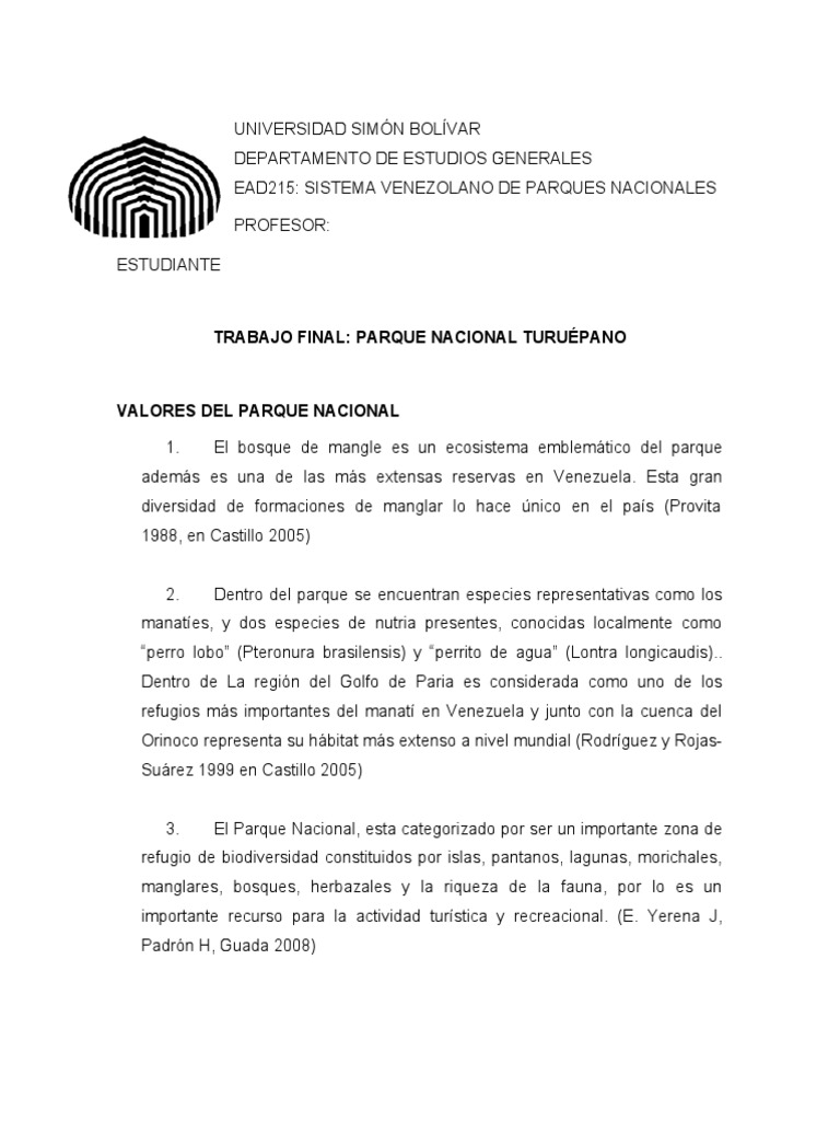 TRABAJO FINAL: PARQUE NACIONAL TURUÉPANO