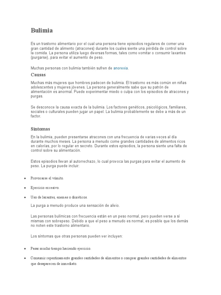 sociales o culturales pueden jugar un papel. La bulimia probablemente se debe a más de un