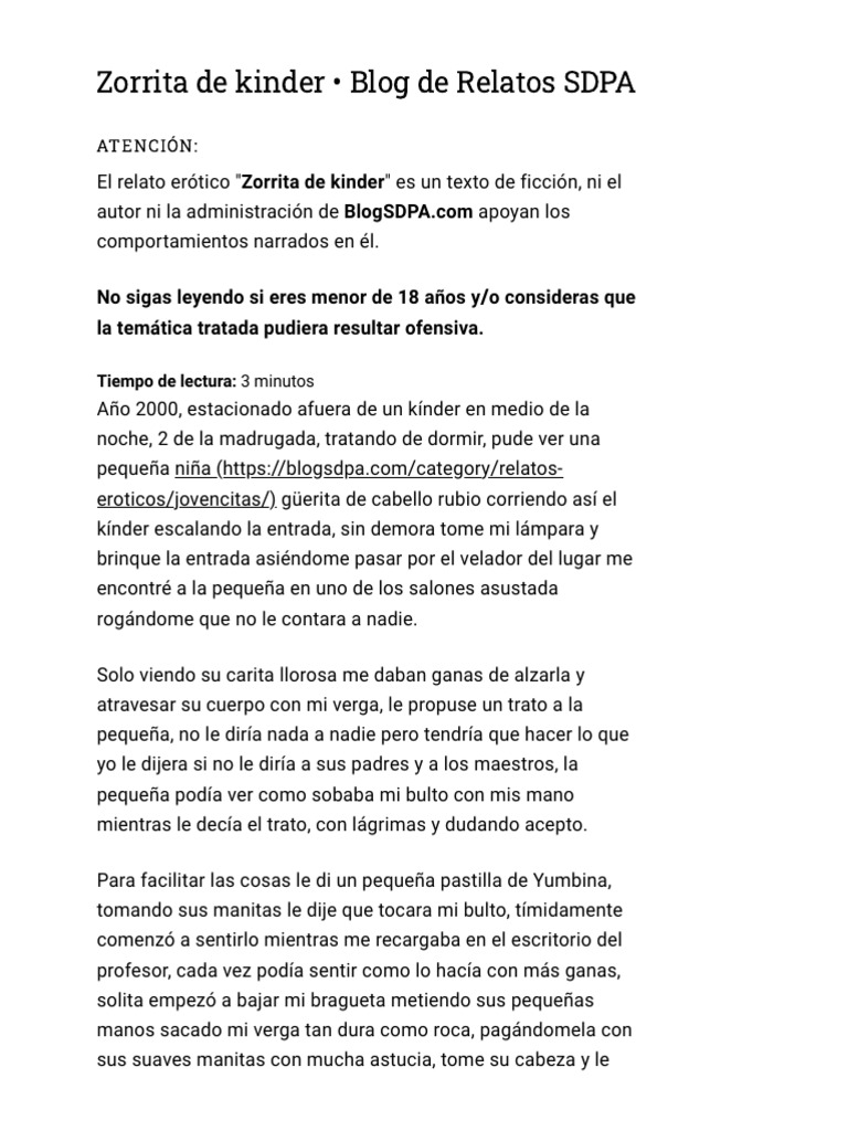 El relato erótico "Zorrita de kinder" es un texto de ficción, ni el