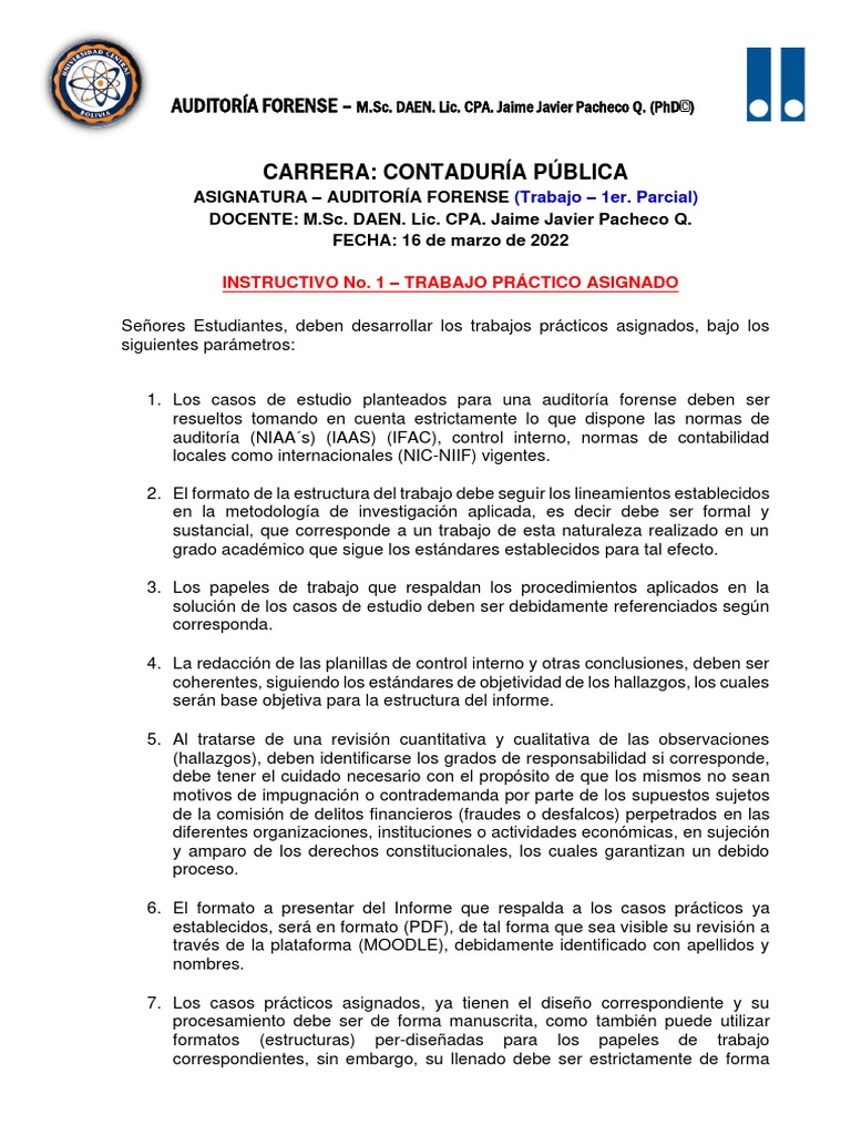 ASIGNATURA – AUDITORÍA FORENSE (Trabajo – 1er. Parcial)