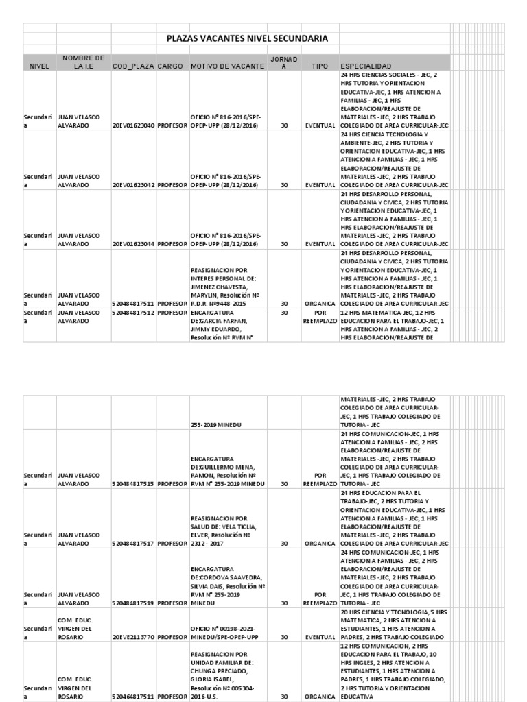 Plazas Vacantes Nivel Secundaria