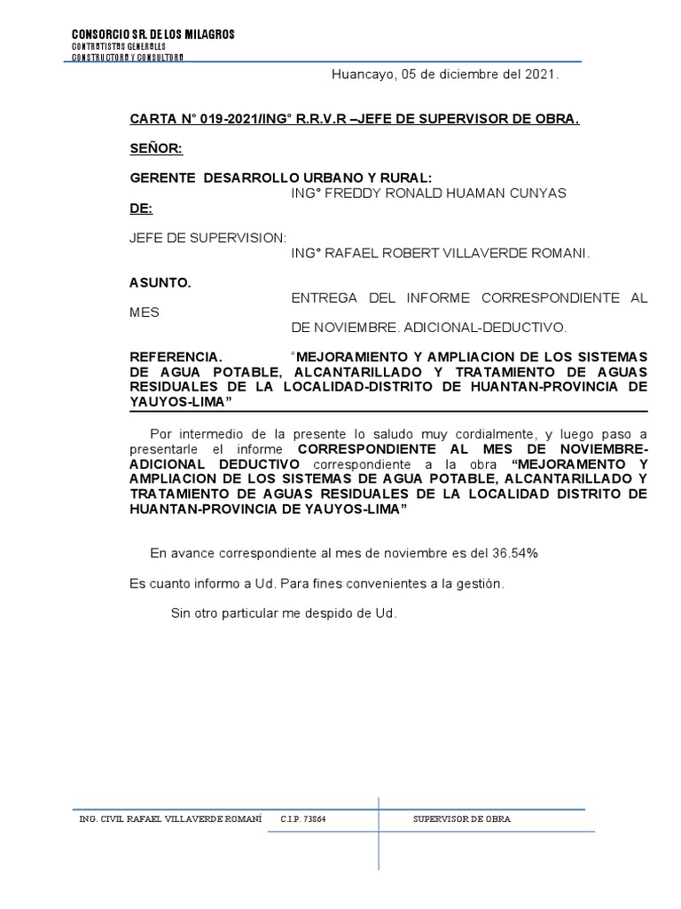 Informe de Avance de Obra Huantan