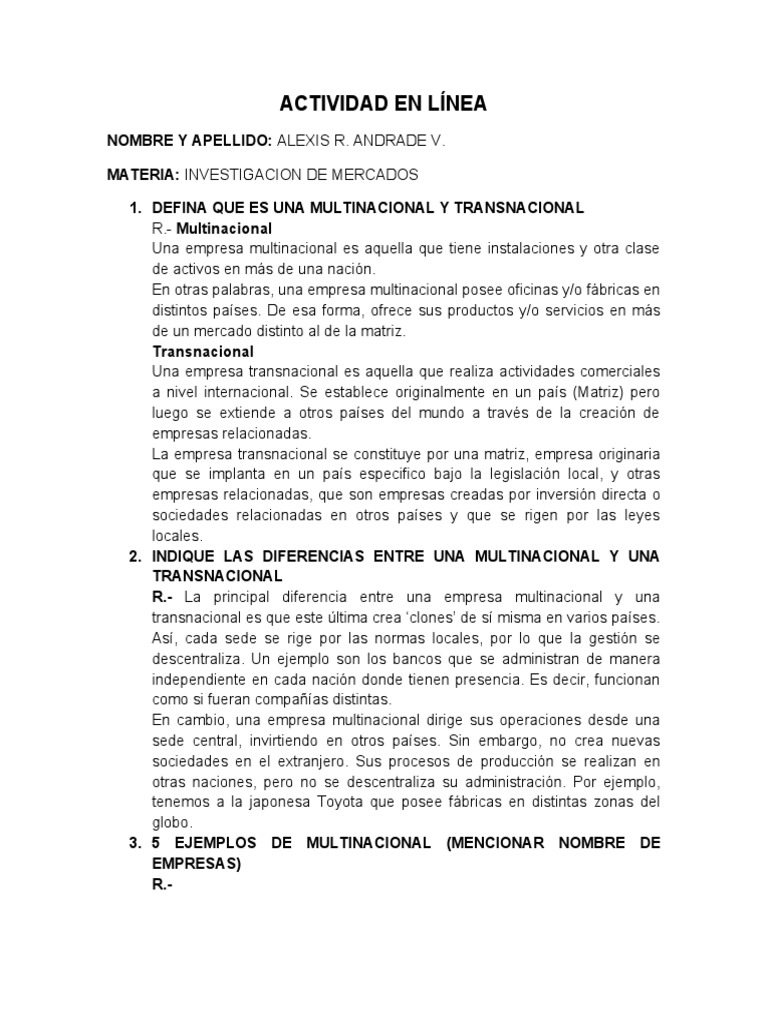 1. DEFINA QUE ES UNA MULTINACIONAL Y TRANSNACIONAL