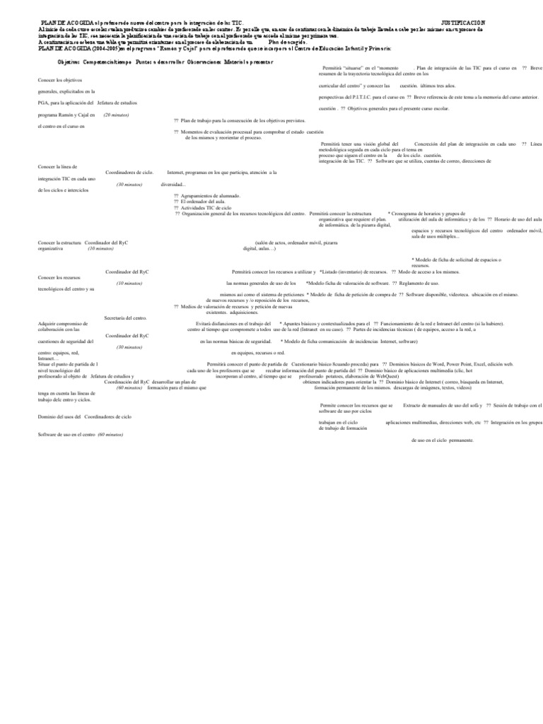 PLAN DE ACOGIDA (2004-2005)en el programa “Ramón y Cajal” para el profesorado que se incorpora al Centro de Educación Infantil y Primaria: