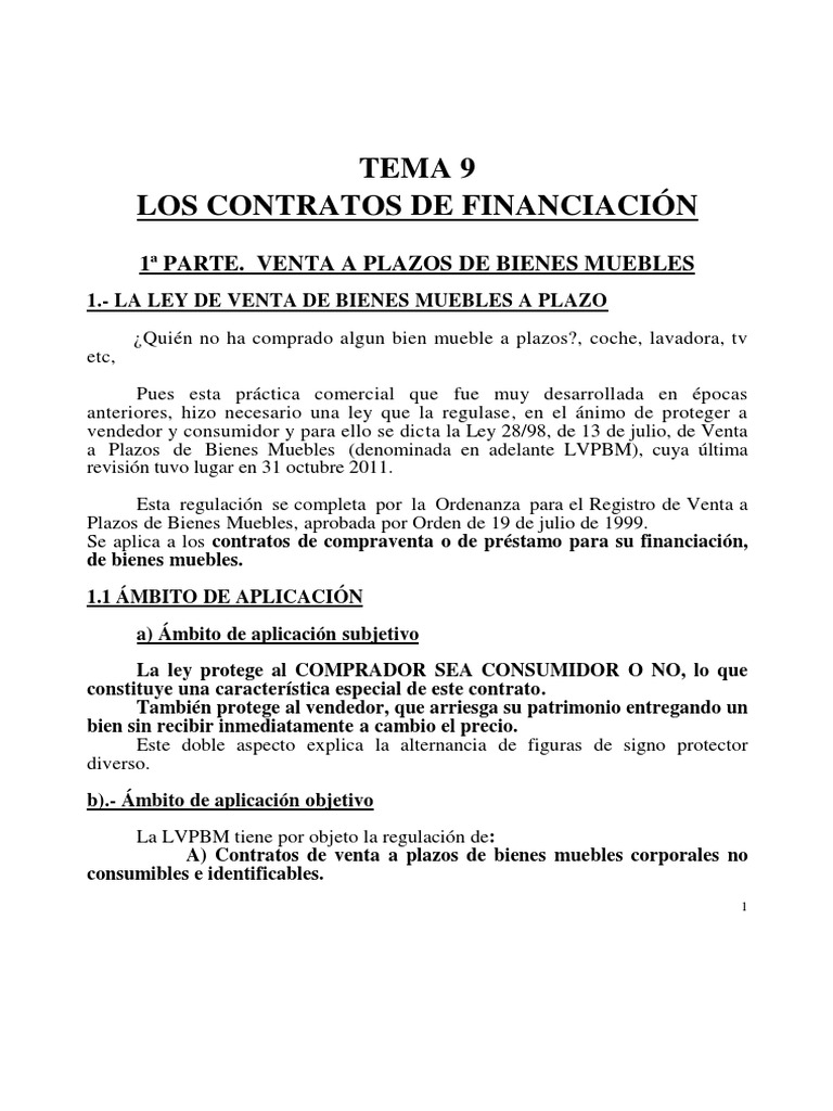 1ª PARTE. VENTA A PLAZOS DE BIENES MUEBLES