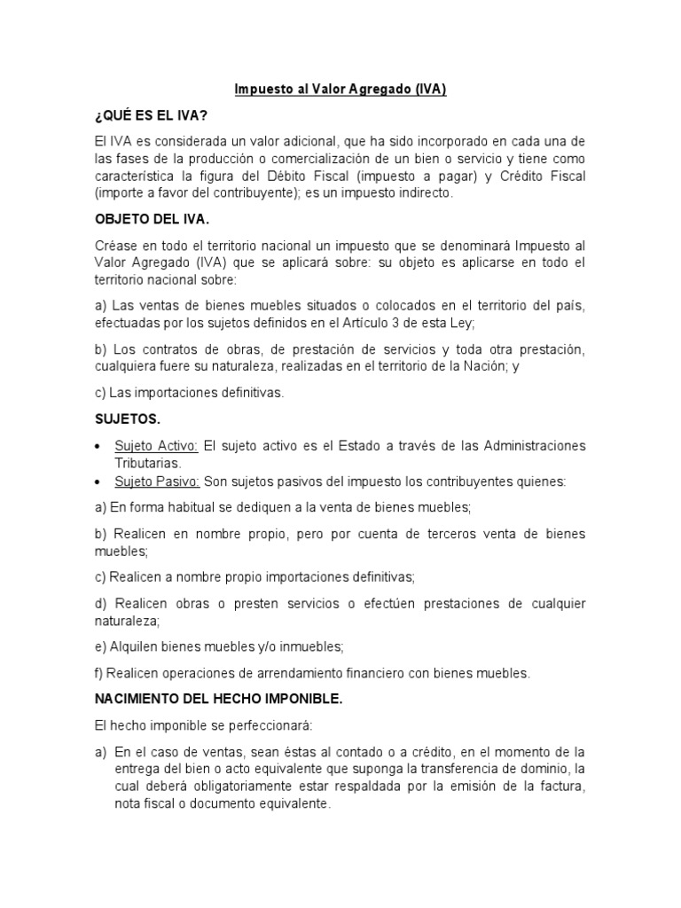 Valor Agregado (IVA) que se aplicará sobre: su objeto es aplicarse en todo el