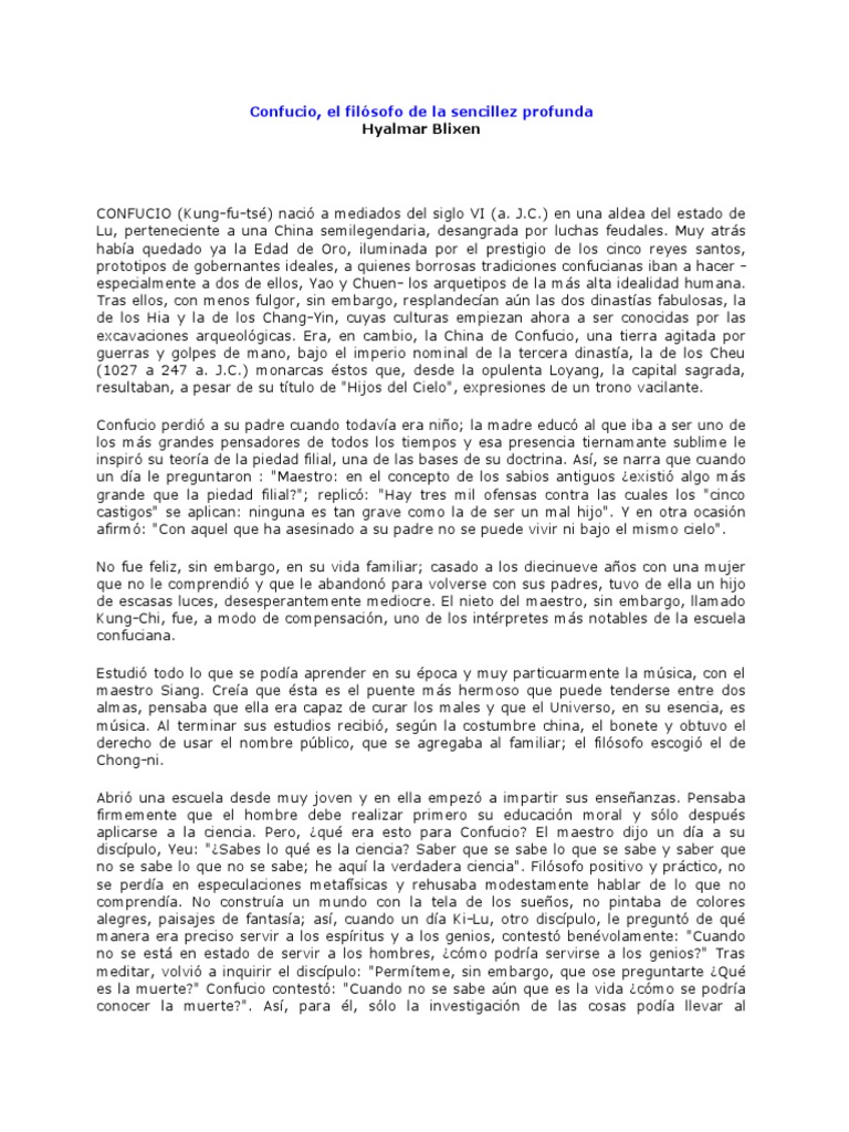 CONFUCIO (Kung-fu-tsé) nació a mediados del siglo VI (a. J.C.) en una aldea del estado de