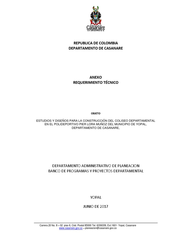 ESTUDIOS Y DISEÑOS PARA LA CONSTRUCCIÓN DEL COLISEO DEPARTAMENTAL EN EL