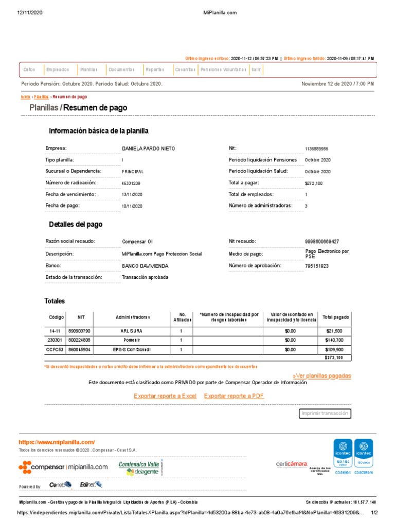 [Link] - Gestión y pago de la Planilla Integral de Liquidación de Aportes (PILA) - Colombia Su dirección IP actual es: [Link]