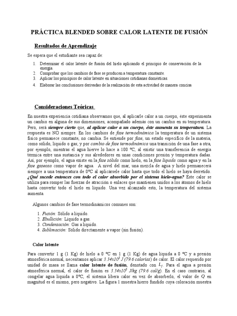 PRÁCTICA BLENDED SOBRE CALOR LATENTE DE FUSIÓN