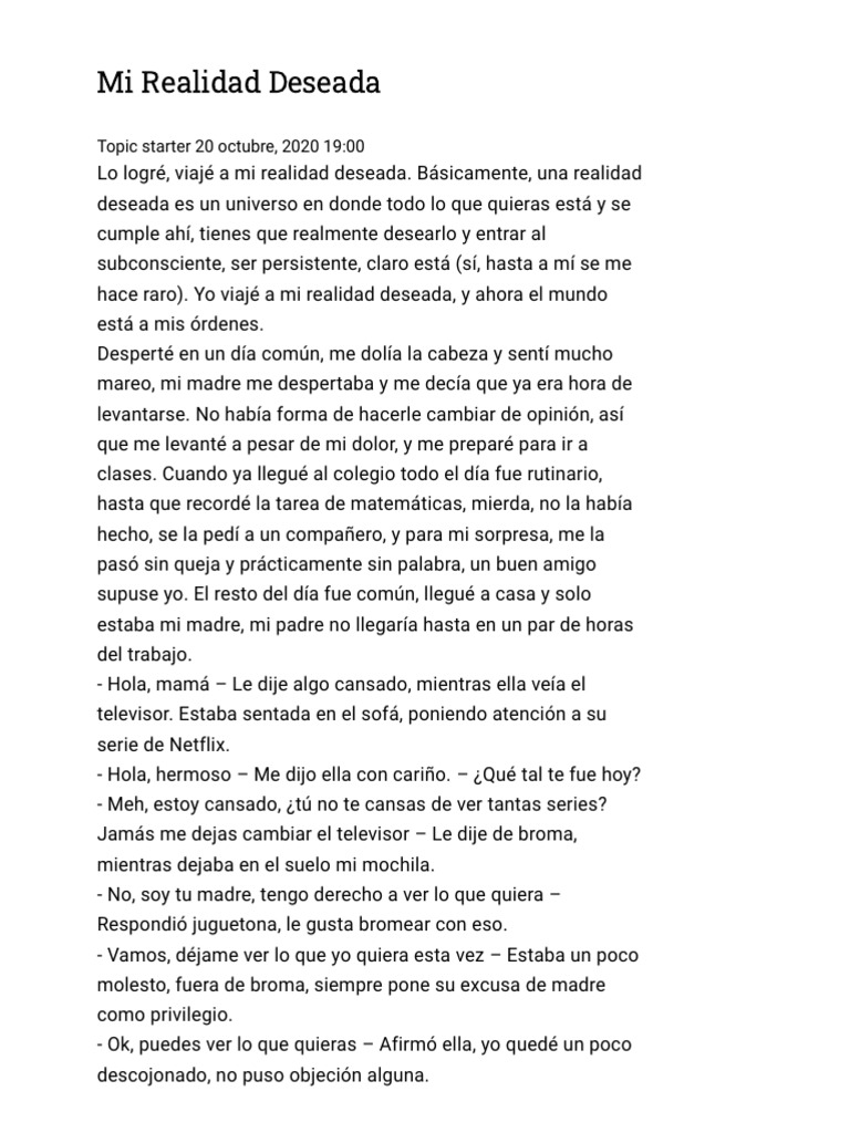hace raro). Yo viajé a mi realidad deseada, y ahora el mundo
