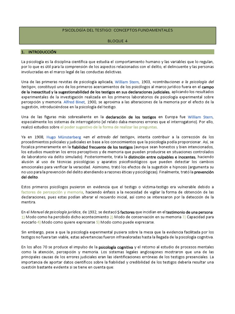 En el Manual de psicología jurídica, de 1932, se destacó 5 factores que incidían en el testimonio de una persona: