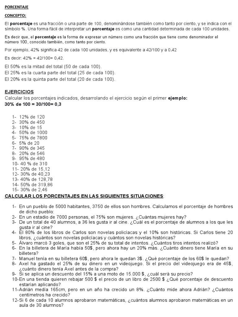 Calcular los porcentajes indicados, desarrolando el ejercicio según el primer ejemplo: