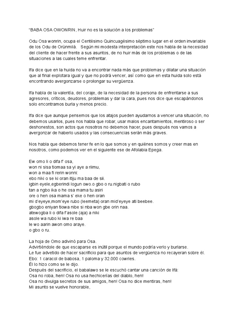 En el siguiente ese del tratado de Afolabia Epega, Ifa nos habla de que esta persona vino a