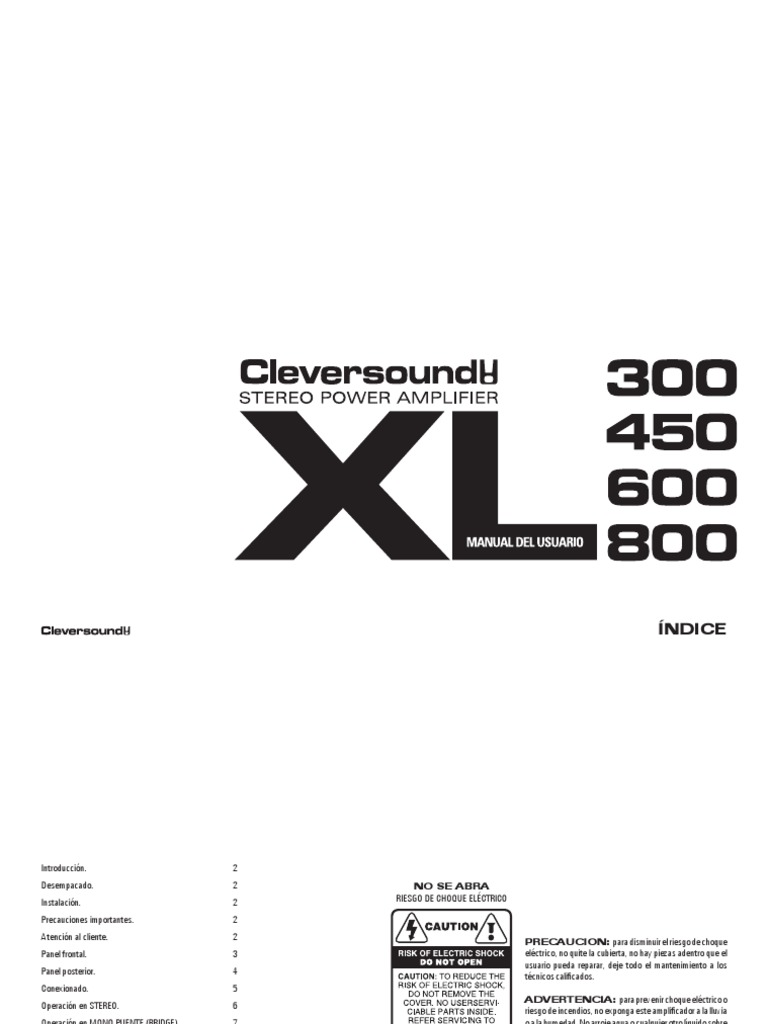 Gracias por comprar un amplificador de la nueva serie XL de Cleversound. Esta fa- 6) NO intente operar esta unidad si muestra cualquier tipo de daño.