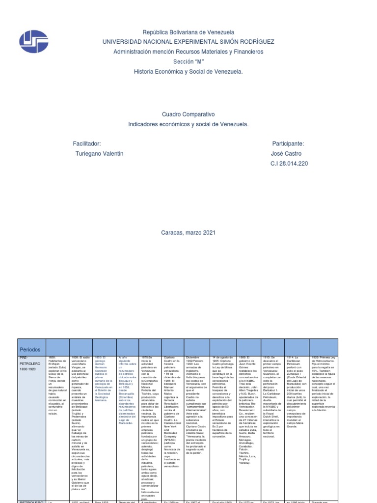 PETROLERO El Moján José María alemán informa sobre actividad historia 1903: Las Castro promulga Juan Vicente primer campo Petroleum Fija el mínimo