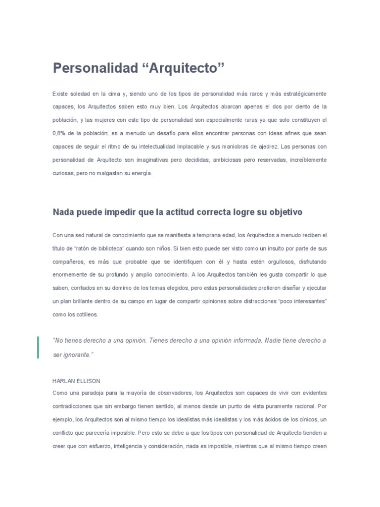 personalidad de Arquitecto son imaginativas pero decididas, ambiciosas pero reservadas, increíblemente