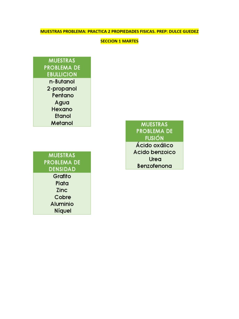 MUESTRAS PROBLEMA: PRACTICA 2 PROPIEDADES FISICAS.