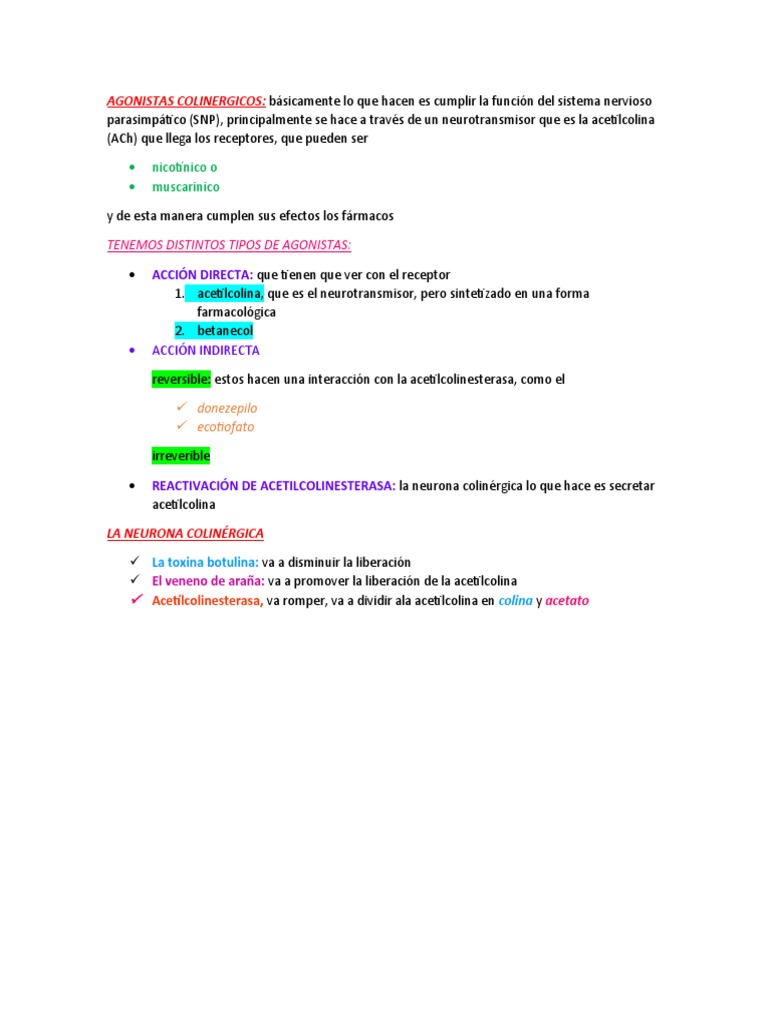 AGONISTAS COLINERGICOS: básicamente lo que hacen es cumplir la función del sistema nervioso