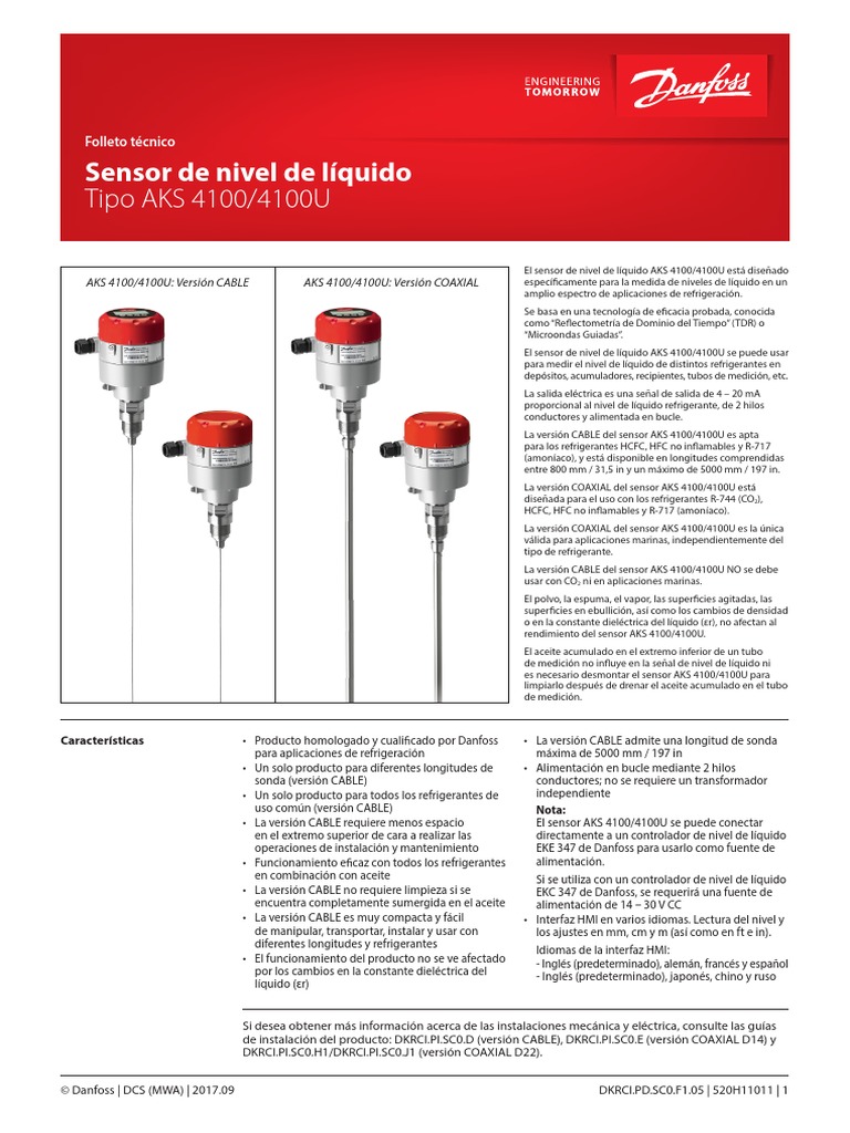 Características • Producto homologado y cualificado por Danfoss • La versión CABLE admite una longitud de sonda