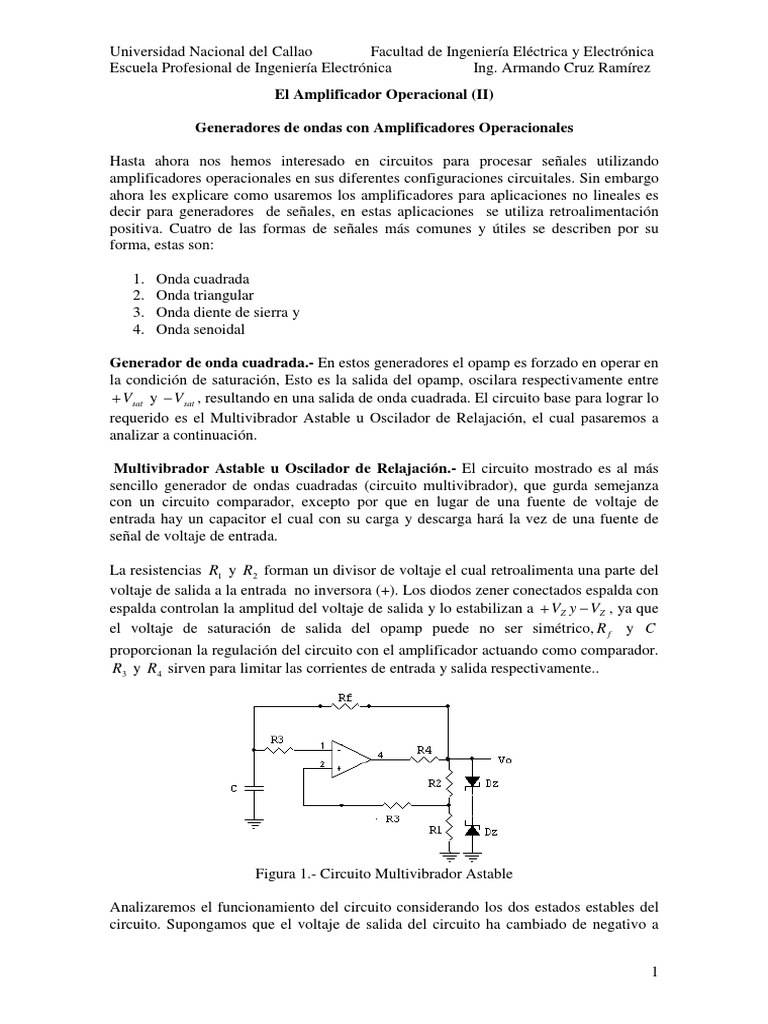 amplificadores operacionales en sus diferentes configuraciones circuitales. Sin embargo