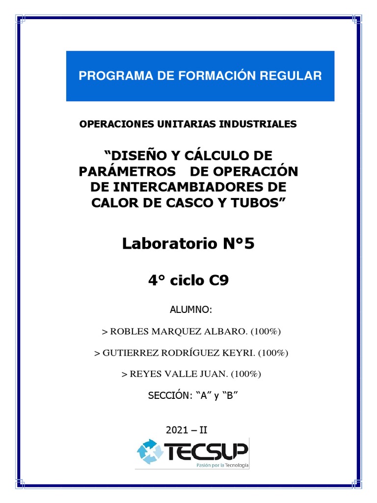 de casco y tubos) mediante la hoja de cálculo, haciendo uso de conocimientos de