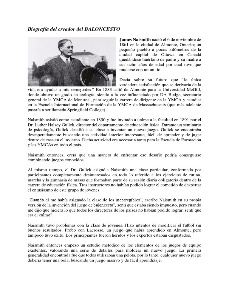Biografía del creador del BALONCESTO