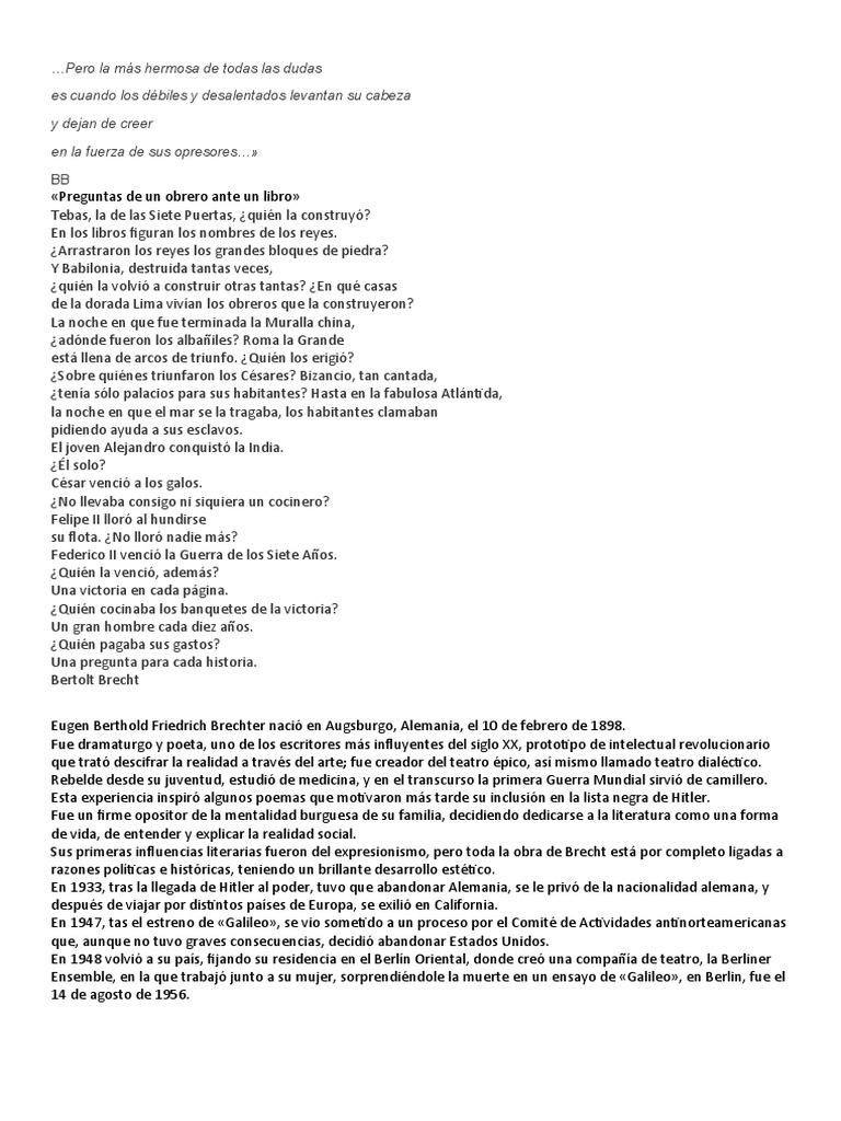 «Preguntas de un obrero ante un libro»