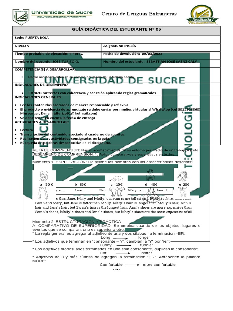GUÍA DIDÁCTICA DEL ESTUDIANTE Nº 05