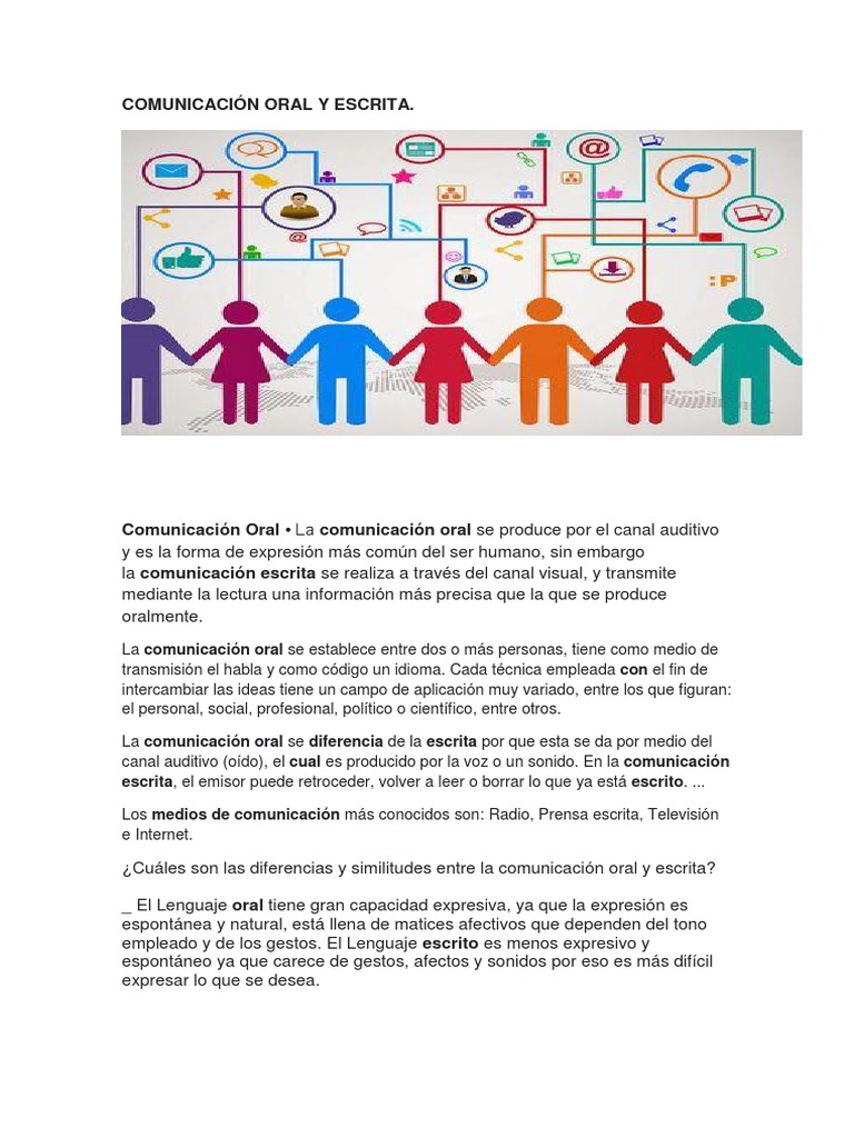 La comunicación oral se diferencia de la escrita por que esta se da por medio del