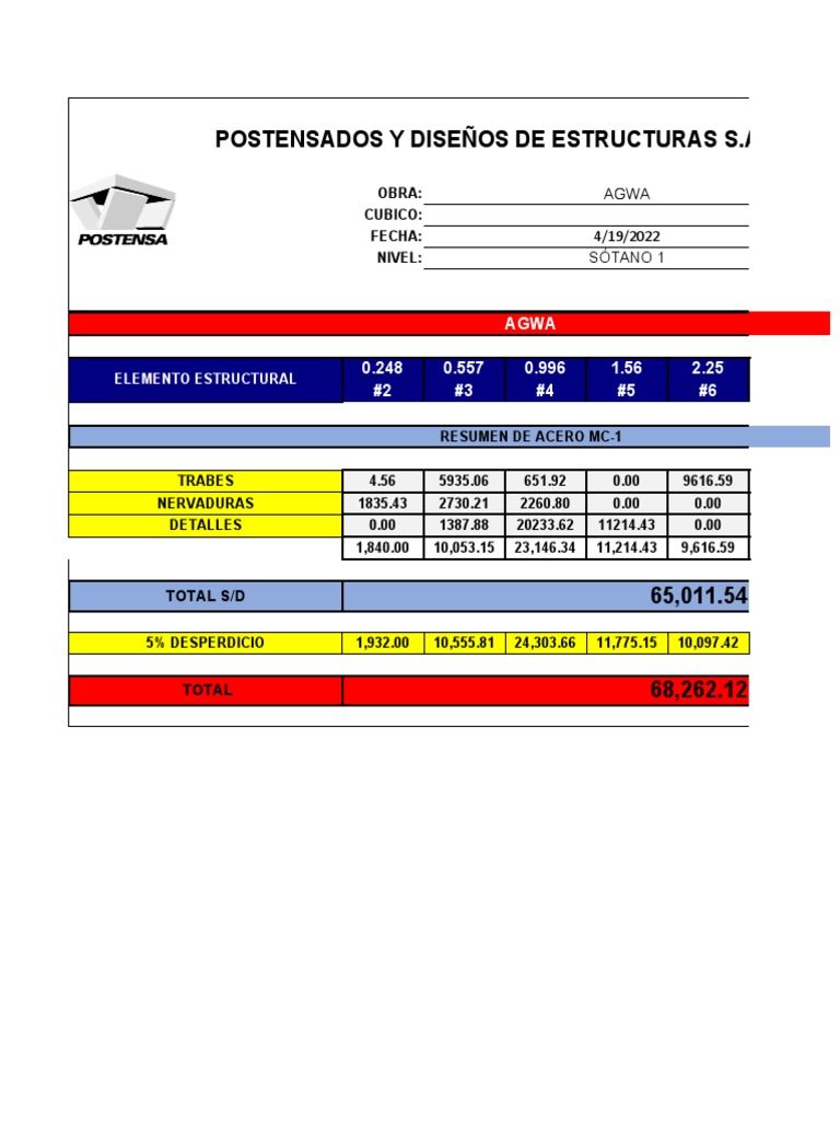 No. CONCEPTO EJE No. DIAM LONG (M) 2 (1/4") 3 (3/8") 4 (1/2") 5 (5/8") 6 (3/4") 8 (1") 10 (1 1/4") 12 (1 1/2") POR ELEMENTOS TOTAL