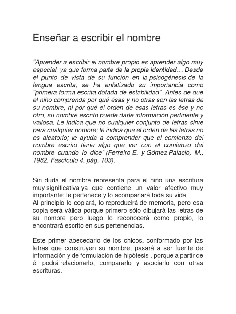 "Aprender a escribir el nombre propio es aprender algo muy