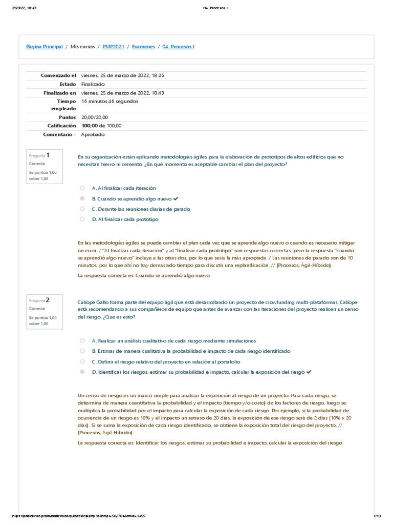 Página Principal / Mis cursos / PMP2021 / Examenes / 04. Procesos I