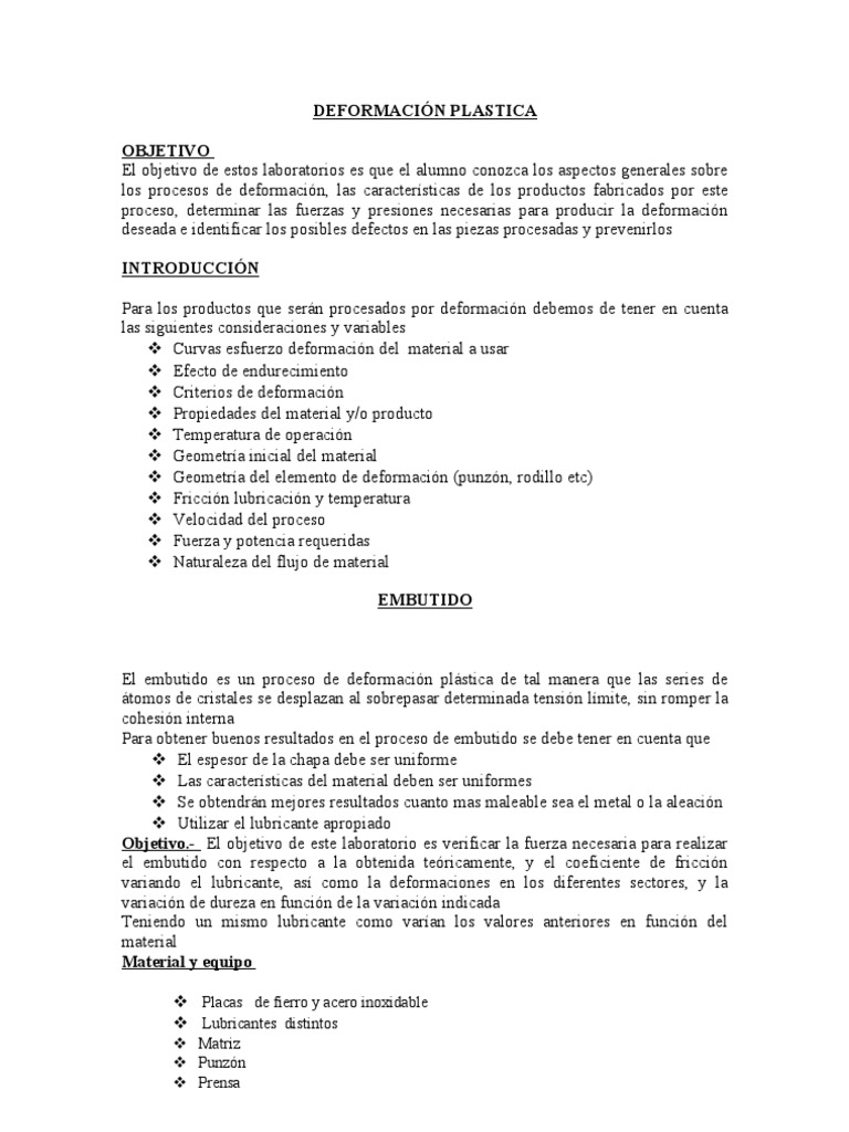 El embutido es un proceso de deformación plástica de tal manera que las series de