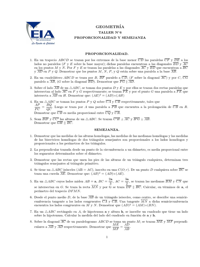 1. Demostrar que las medidas de las alturas homólogas, las medidas de las medianas homólogas y las medidas