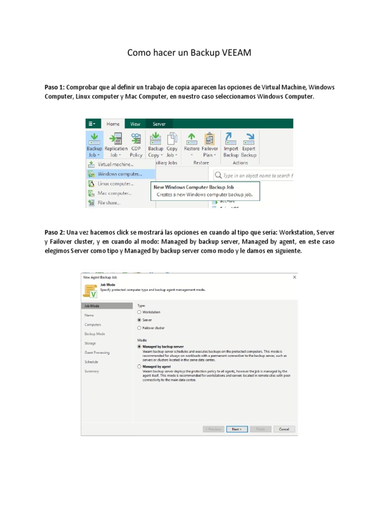 y Failover cluster, y en cuando al modo: Managed by backup server, Managed by agent, en este caso