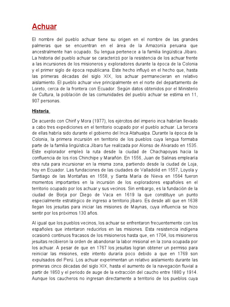 territorio ocupado por los achuar y sus vecinos. Sin embargo, es la fundación de la