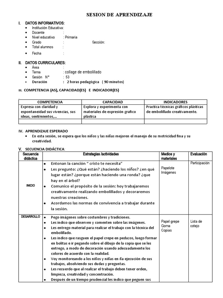 espontaneidad sus vivencias, sus materiales de expresión grafico de embolillado creativamente.