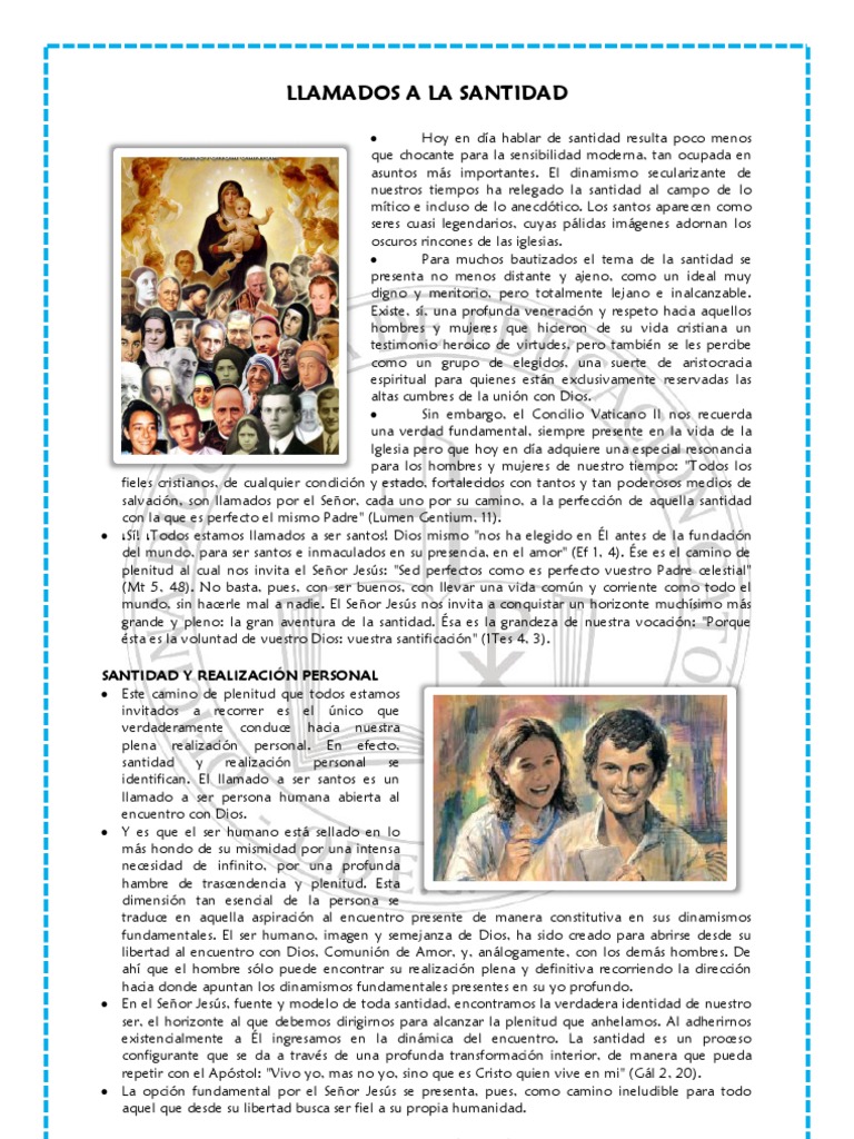 • Todos estamos llamados a ser santos: Lev 20, 26; Mt 5, 48; Ef 1, 4; 1Tes 4, 3; 1Pe 1, 15-16.