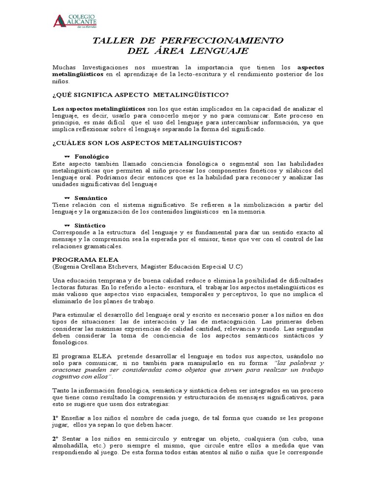 El programa ELEA pretende desarrollar el lenguaje en todos sus aspectos, usándolo no