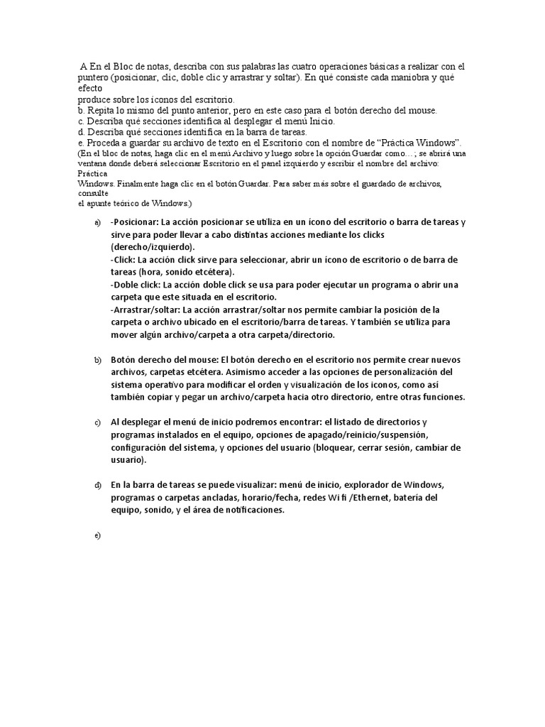 e. Proceda a guardar su archivo de texto en el Escritorio con el nombre de “Práctica Windows”.