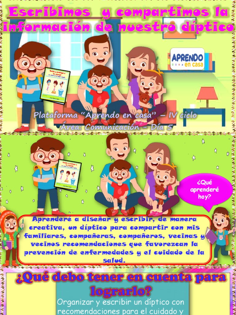 • Inicia la presentación de tu díptico. Explícales cómo está organizado; luego,